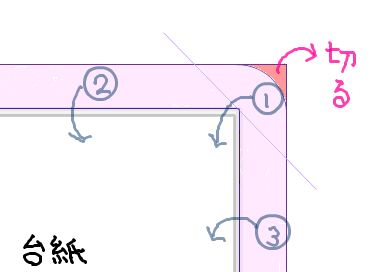 主に手帳の外装に関する写真が増える予定です。…と言いますのも私、毎年手帳選びに苦心していまして、なかなか使い勝手とデザインに納得いくものを見つけられずにいたのです。手帳にちょっと拘りを持ってしまう方なら一度ならず「この機能にこのカバーが付いていたら良いのに!」と思った事があるのではないでしょうか? ならばいっそリフィルを買って自分で好きな表紙を付けてしまえ! そう決意するまで、時間は掛からなかったのでした。 [PR]× [PR]上記の広告は3ヶ月以上新規記事投稿のないブログに表示されています。新しい記事を書く事で広告が消えます。 製作ひとコマリフィルに合わせて角丸にします。 装丁作業で1、2を競う難所がコーナーの処理。